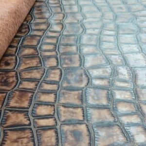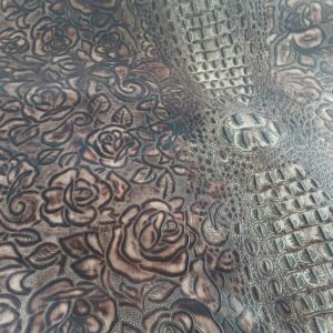 Premium embossed leather, perfect for bagmaking 2/3 oz. Unique tree bark like effect in luxurious shades of umber, tan and chocolate brown with an antique gold distressed metallic