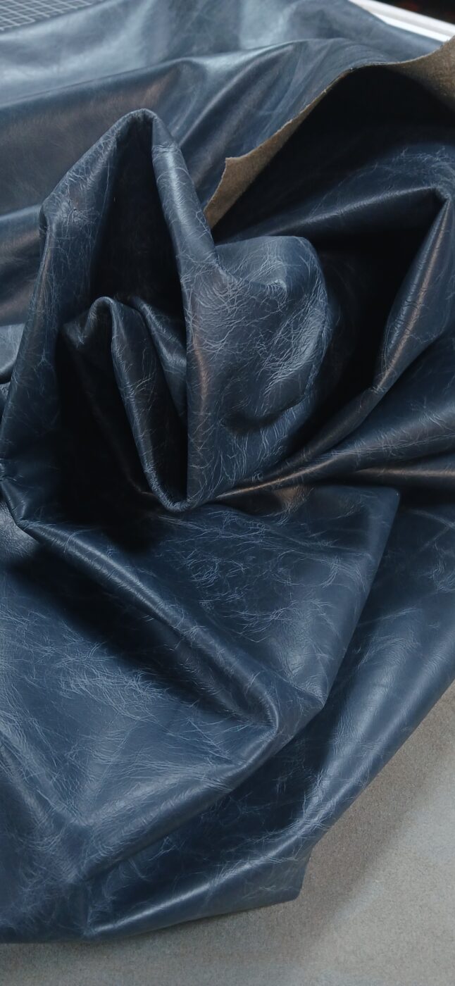 Premium leather, perfect for bagmaking 2/3 oz. Is it black? Is it blue? WHO CARE!! It’s fabulous~ A lightweight leather that is fully sealed